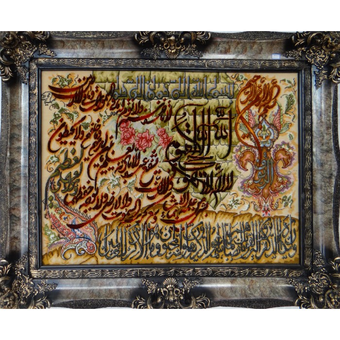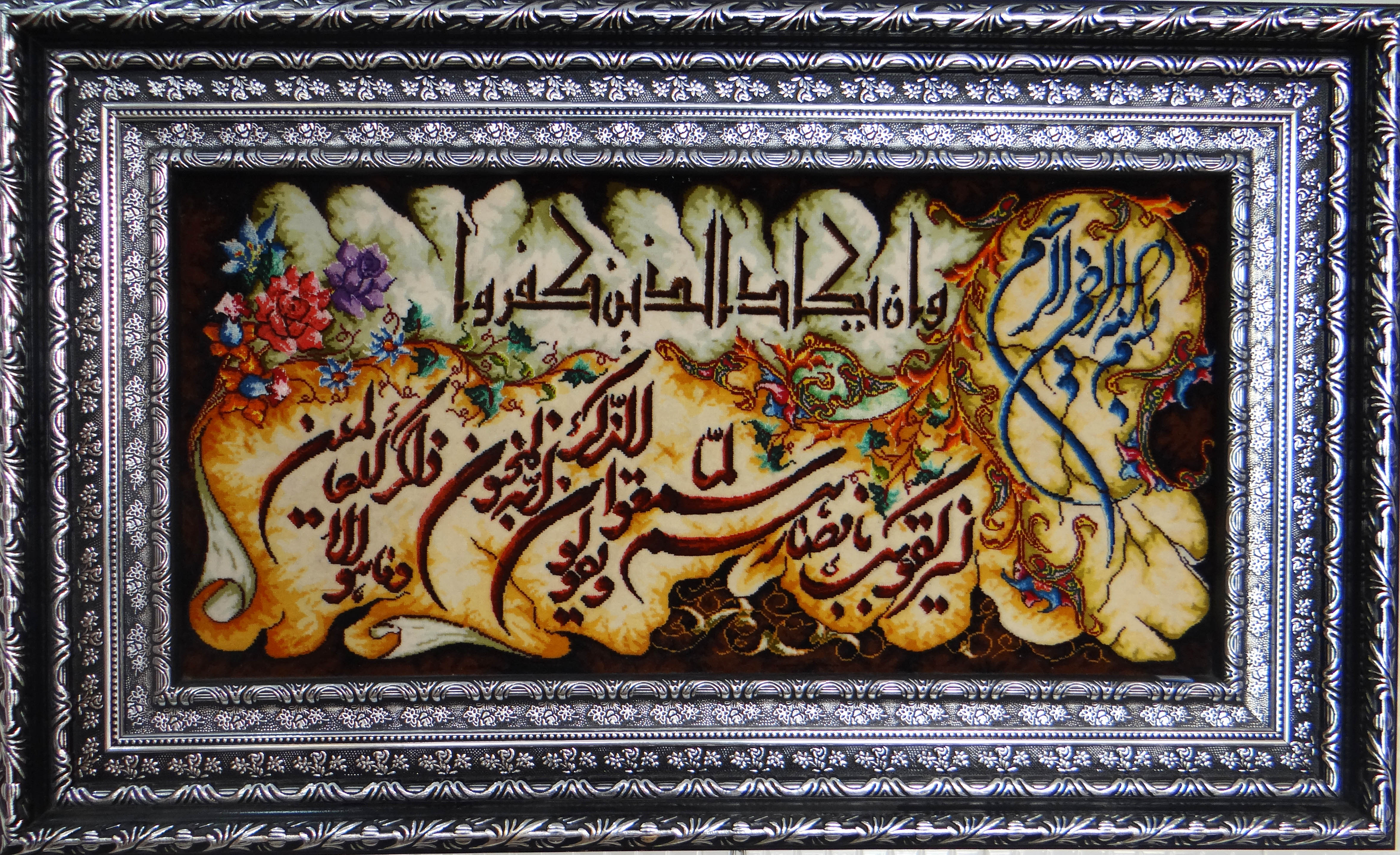 sixmeters Kerman ghalam AzarShahr, 25 Knots, border color : Crimson, text color: Bisque ,texture Azarshahr, Pile: wool, Warp: Cotton,dimension:2*3m