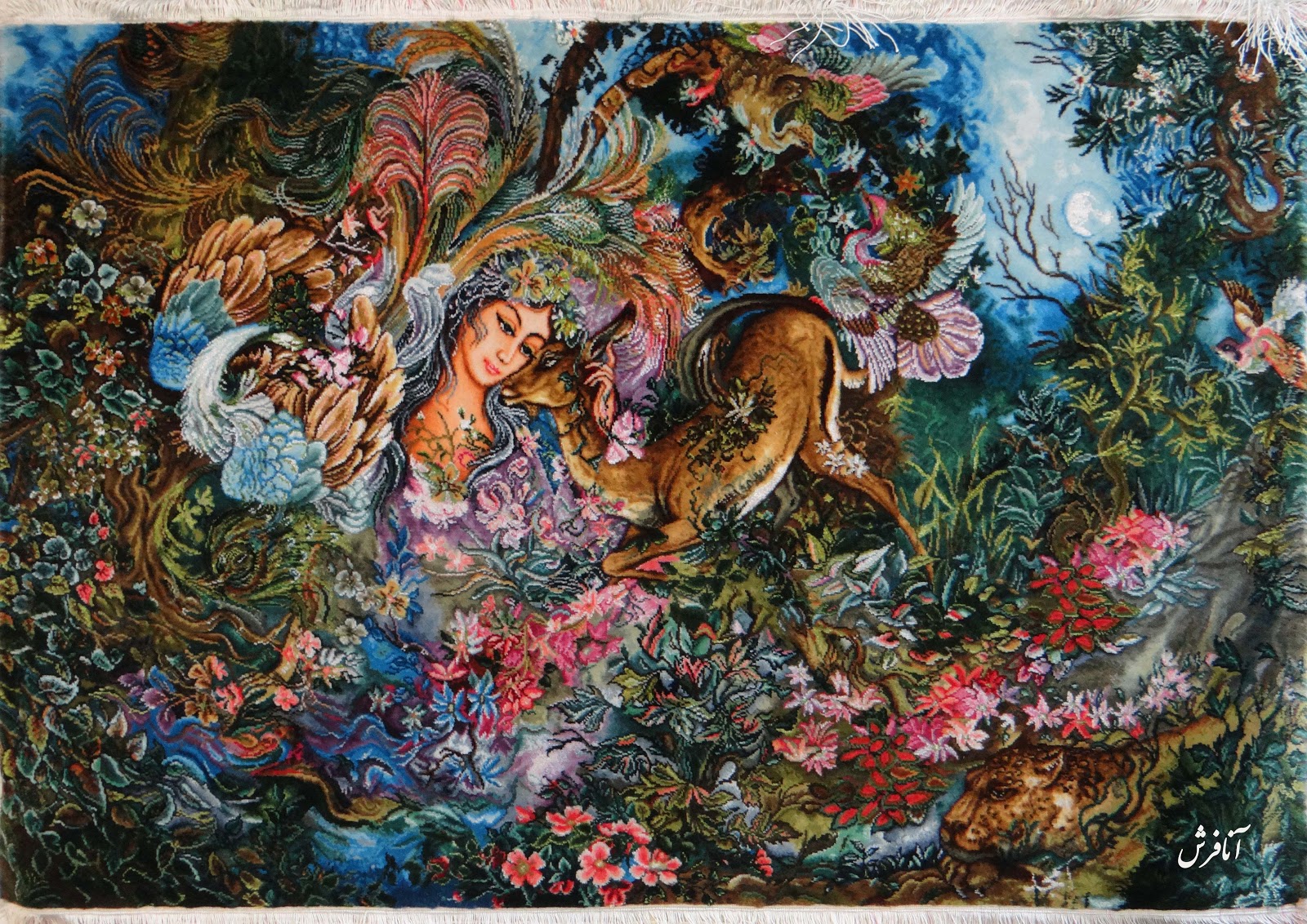 autumn landscape carpets, 50 Knots, Pile: Silk&merino, Warp: silk, dimensions 53x 97 cm(without frame),Texture: Tabriz