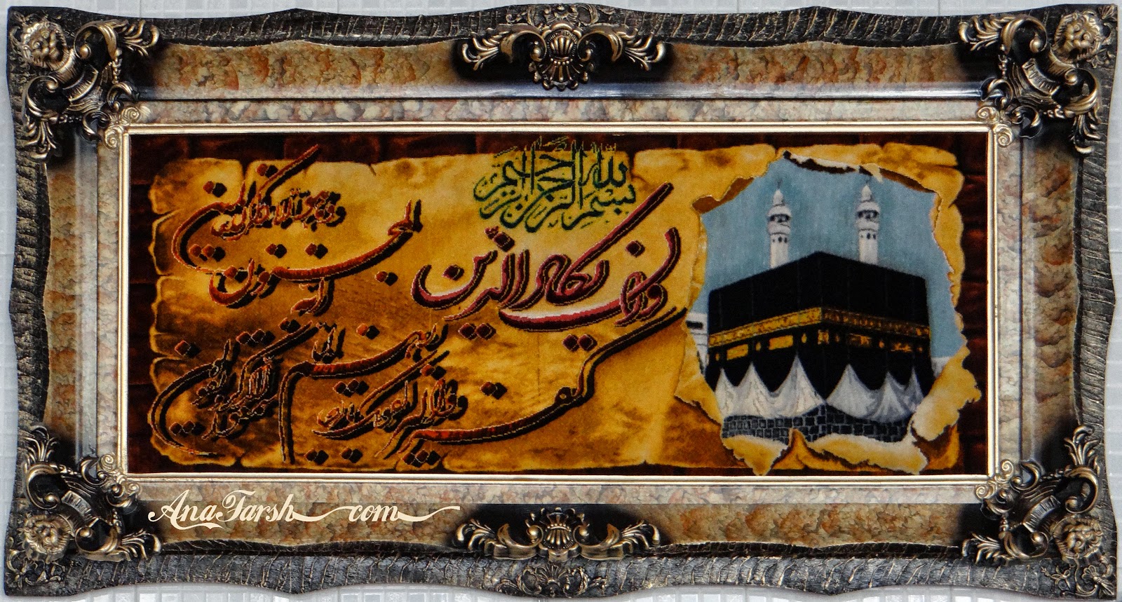 تابلوفرش منظره مرداب , ریز تقریبی: 50 رج , جنس پرز: کرک و ابریشم, جنس چله : ابریشم , ابعاد (بدون قاب): 167 *112 سانتی متر , محل بافت: تبریز-سردرود
