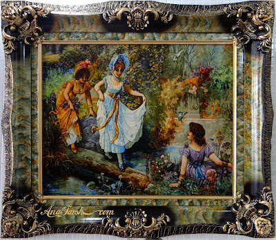 The Lagoon, 50 Knots, Pile: Silk&merino, Warp: Silk , dimensions 112 *167 cm(without frame),Texture: Tabriz- Sardroud