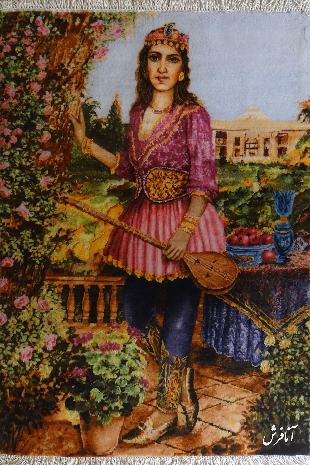 Qajar girl Tableau Carpets, 50 Knots, Pile: merino & Silk , Warp: silk, Dimensions: 59 x85cm - without frame