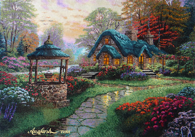 The forest and cottages Scenery , 50 Knots, Pile: Silk&merino, Warp: silk, dimensions 55 *80 cm(without frame),Texture: Tabriz- Sardroud