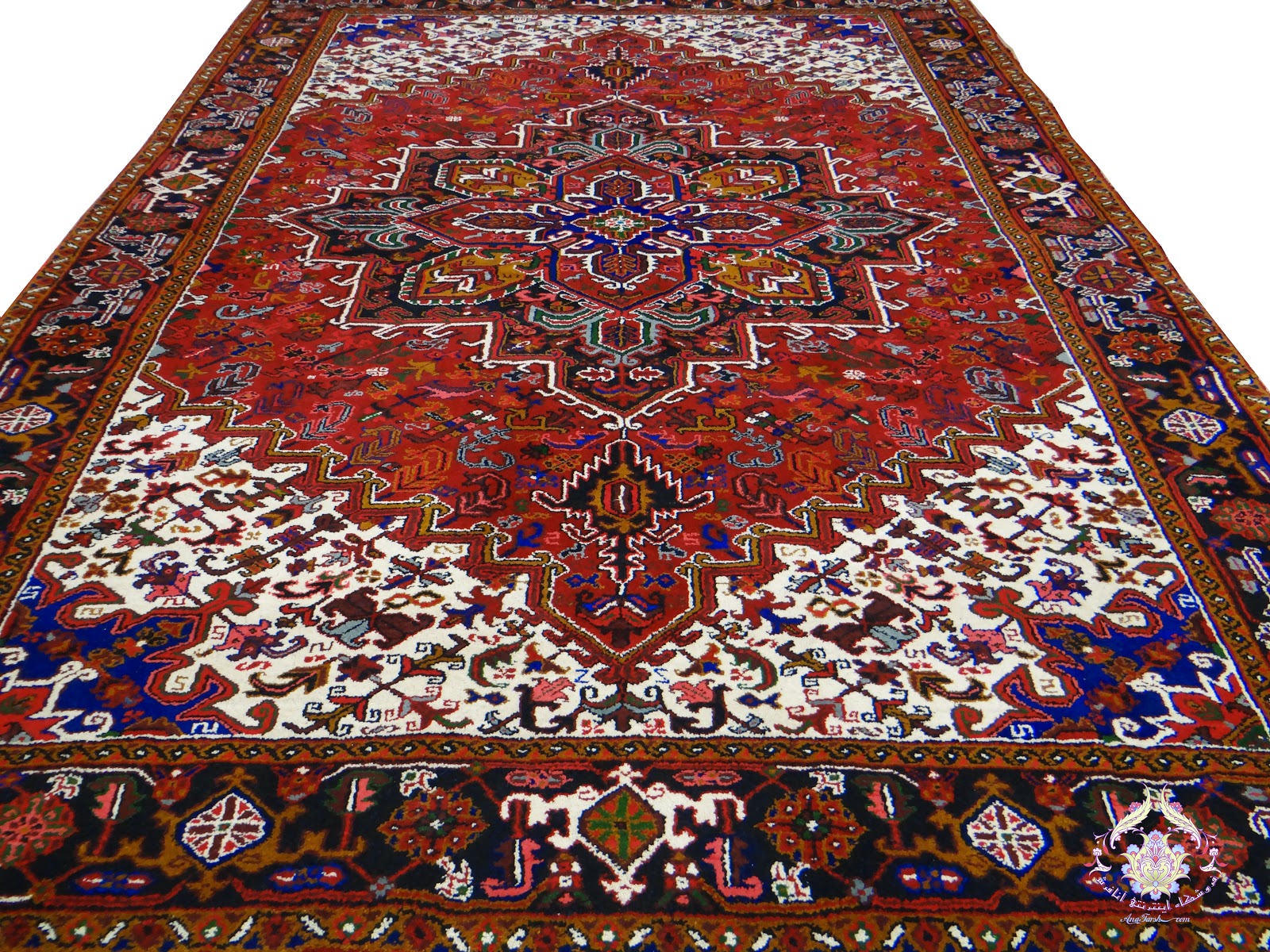ninemeters Kulvanaq, 20Knots, border color : Dark Blue, text color: Bisque ,texture Heriz-Kulvanaq, Pile: wool, Warp: Cotton, Dimention:2*(2.5*3.5) m