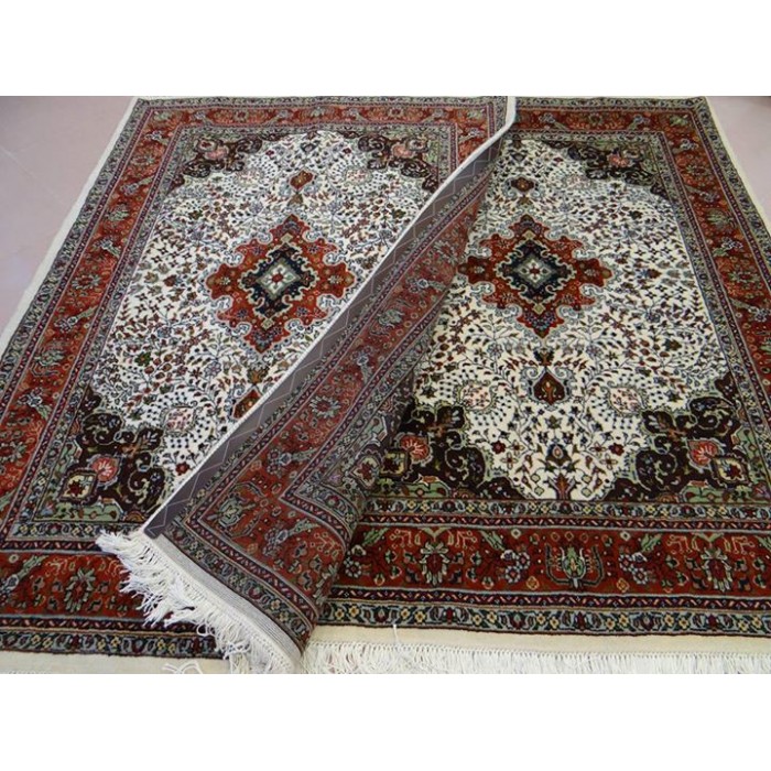 قالیچه کرمان قلم آذرشهر، 25 رج ، رنگ حاشیه پیازی ،رنگ متن :کرم ،جنس پرز :پشم ، جنس چله:نخ ، ابعاد :1.5*2 متر