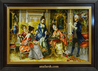 تابلوفرش گل یاسمن, ریز تقریبی: 50 رج , جنس پرز: کرک و ابریشم, جنس چله : ابریشم , ابعاد (بدون قاب): 85*60 سانتی متر , محل بافت: تبریز- سردرود
