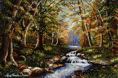 The Forest and waterfall Scenery , 50 Knots, Pile: Silk&merino, Warp: silk, dimensions 120 *75 cm(without frame),Texture: Tabriz- Sardroud