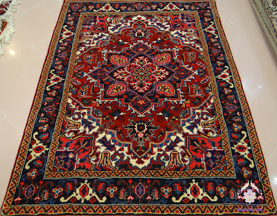 Pair of Rugs Alvar Heriz Drawings, 20 Knots, border color : Dark Blue, text color: Red ,texture Heriz, Pile: wool, Warp: Cotton,Dimention 205*160 cm