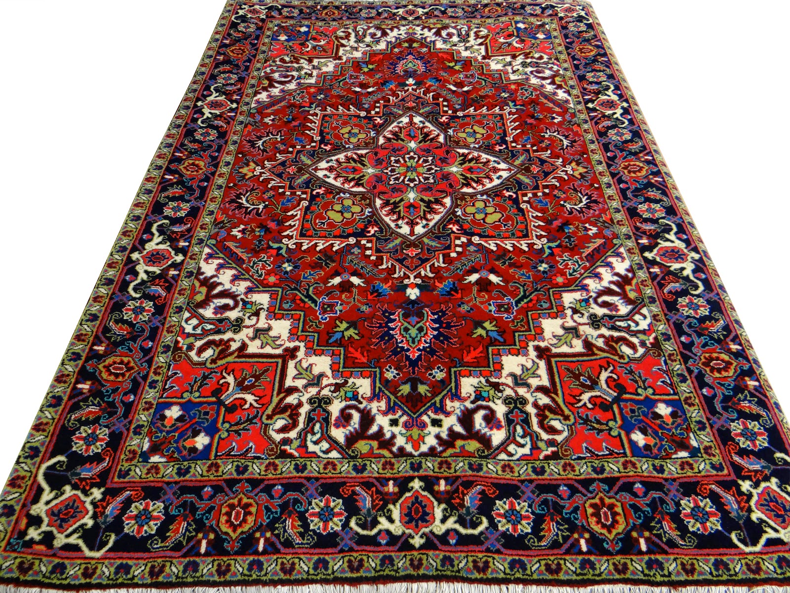 Pair of sixmeters Alvar, Heriz Drawings, 20 Knots, border color : Dark Blue, text color: Red,texture: Heriz, Pile: wool, Warp: Cotton,Dimention 300*200cm*2